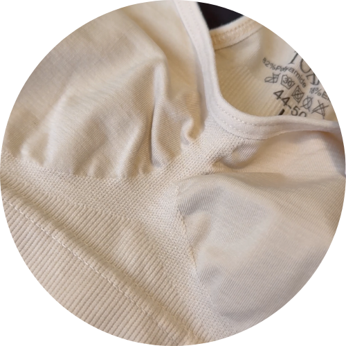 Realizată dintr-un mix tehnic de 82% poliamidă și 18% elastan, bustiera este extrem de moale și respirabilă, adaptându-se perfect formei corpului fără a strânge sau a irita.